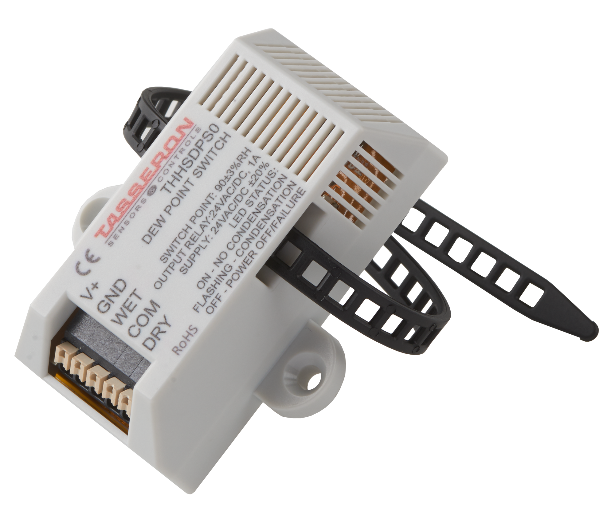 The Tasseron dew point switch sends early-warning signal before dew point is reached which can be used to control condensation in critical environments. This is achieved by a quick and accurate response in monitoring relative humidity in combination with temperature.